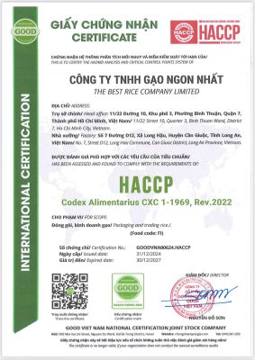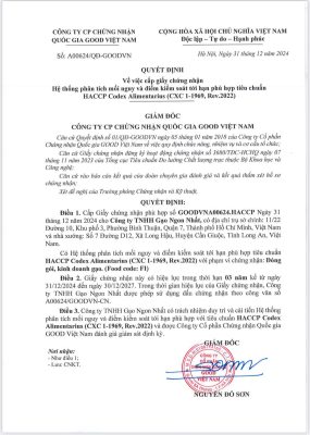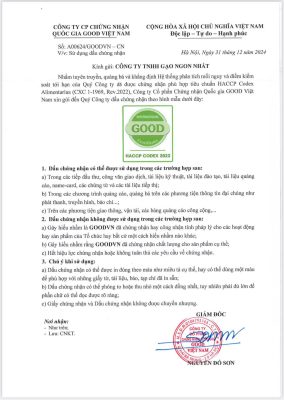 Công ty TNHH Gạo Ngon Nhất xin cập nhật các Quyết định và Chứng nhận về Vệ Sinh An Toàn Thực Phẩm như sau: